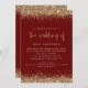 Elegante Código QR Borgonha com Casamento Glitter Dourado. Adicione o seu código QR ao site do seu casamento no verso, o que torna esta uma opção conveniente para os seus convidados responderem e verem todos os detalhes sem a necessidade de cartões separados de RSVP e detalhes. Você pode criar códigos QR gratuitamente online. Basta procurar por “criador de código QR” e muitas opções surgirão para criar gratuitamente. Um conjunto elegante de tipografia é em dourado para o título principal O Casamento, complementando o resto do texto que você pode facilmente personalizar, com bordas de confete glitter dourado falso no topo e na parte inferior e também no verso.