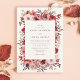 Um modelo de convite para casamentos outono florais vermelho rústico. Este elegante convite para casamentos outono apresenta flores aquosas e folhas em vermelho-sujo, rosa-pincel, verde e creme.