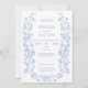 Elegante convite para Casamento vintage Azul Dusty em França. Este convite tem um estilo suave e elegante com um quadro floral azul mudo que parece eterno. As ilustrações florais brancas deliciosas ao longo dos lados adicionam um toque de choro coquete e charme inspirado na natureza. O layout é limpo e organizado, usando um alinhamento centralizado e espaçamento nítido para criar uma aparência refinada. Tem um tema inspirado em francês. No geral, a design sente-se romântica, mas subestimada, perfeita para um casamento moderno, mas tradicional.