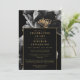 Convites Elegante Celebração de Vida Floral Preta e Dourada