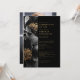 Este convite elegante de celebração floral preta e dourada da vida e do luto pode ser personalizado com suas informações em tipografia clássica e uma foto especial no verso. Criado por Thisisnotme©
