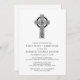 Um elegante convite de primeira comunhão sagrada com ilustração de uma cruz celta e uma simples tipografia moderna.