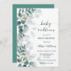 Chá de fraldas de eucalipto moderno verde elegante.Convite para Chá de fraldas com a cor d'água, folhas de eucalipto e suculentes com borda de sotaque dourado.