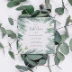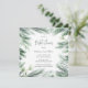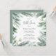 Cartão de Chá de panela Elegante e romântico de inverno com ilustração aquosa da folhagem e verde de inverno, caligrafia moderna e um backer verde correspondente. Elementos de texto totalmente personalizáveis para ajustado do seu evento de casamento.
