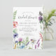 Um convite elegante para seu Chá de panela apresenta um quadro de flores silvestres de aquarela. Personalize com todos os seus detalhes importantes incluem nome de noiva, data, hora, local, RSVP e informações de registro. Isto seria excelente para um chá de panela temático de primavera, festa de jardim de verão.