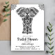 Amaze seus convidados com este elegante chá de panela étnico apresentando um belo elefante artístico sobre um fundo branco. Basta adicionar os detalhes do seu evento neste modelo fácil de usar para torná-lo um convite de tipo único. Sacudir a carta para revelar um elegante padrão indiano tradicional preto-e-branco na parte de trás da carta.