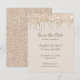 Convite de casamento elegante e plano em cartão "Save the Date" com brilho falso color champanhe escorrendo na frente e brilho falso adicional color champanhe no verso. Este convite de casamento #SavetheDate acompanha um envelope branco. Por um custo adicional, um envelope com forro de brilho falso pode ser encomendado aqui: https://www.zazzle.com/z/a3k4w3ws?rf=238504902174953975. O texto totalmente personalizável permite que você faça deste convite "Save the Date" único para o seu casamento ou outra ocasião especial, como uma festa de aniversário, festa de aniversário ou festa de quinceañera. Da 369Design.