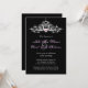 Elegante design de convite de casamento com um candelabro prateado muito detalhado em um fundo negro. Esta design vem em vários produtos de papelaria para fazer um tema bonito para toda a sua papelaria de casamento.