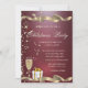 Um convite elegante para festas de Natal com presentes de Natal, vidro de champanhe e chapéu de Papai Noel em fundo vermelho. Estes belos convites de Natal são perfeitos para convites de festas de janto de Natal, convites para troca de presentes de Natal, angariadores de fundos de Natal, convites para bolas de férias e outros eventos realizados durante o mês de dezembro. Use apenas os campos modelo para adicionar suas próprias informações de evento.