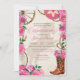 Convite de Quinceanera para um tema charro do país ocidental com uma reviravolta rico. Apresentando rosas elegantes e sotaques de ouro, chapéu e texto de charro sombrero e uma silhueta de cavalo ao fundo, botas de cowboy/cowboy com flores no fundo e sotaques de corda. . Verifique o compro deste convite com meninas com diferentes cores de cabelo, tons de pele e combinações de cores para corresponder ao seu evento, assim como mais acessórios para reunir o dia