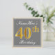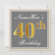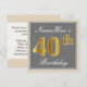 Convites Elegante, Cinza, aniversário de 40 anos Dourada Fa