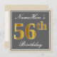 Convites Elegante, Cinza, Faux Dourado 56º Aniversário + No