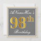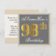 Convites Elegante, Cinza, Faux Dourado 98.º Aniversário + N