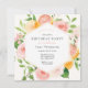 Adorável convite de Aniversário apresenta um quadro de cor d'água de flores cor rosa e fruta cítrica. Personalize com suas informações ou clique em "Clique para personalizar mais" para editar estilos de fonte, tamanho e cores.