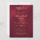 Um cartão de chá de panela moderno e moderno. Fundo colorido borgonha, com letras douradas falsas. A cor burgundy é irregular, como uma pintura de limão fresco em uma parede. O texto: Chá de panela. O texto: Bridal e o nome da noiva é escrito com um moderno roteiro de estilo manchado. Modelos para suas informações. Decorado com restos florais de ouro falsos.