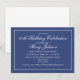 Este design de aniversário apresenta um marinho azul clássico com tipografia personalizada branca.