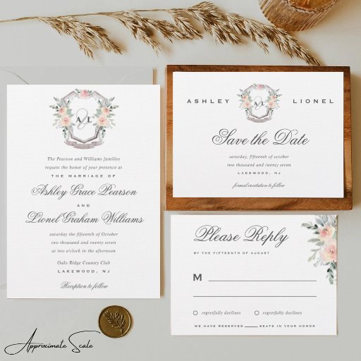 Convites Elegante Clássico Monograma Formal Crest Floral