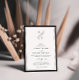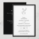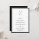 Convite de casamento atemporal e elegante em preto e branco com monograma de folha, código QR e informações mais detalhadas no verso.