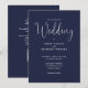 Este convite de casamento azul marinho com escrita elegante minimalista pode ser personalizado com suas informações em tipografia sofisticada com os detalhes do seu site de casamento e seu código QR no verso. Criado por Thisisnotme©