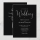 Este convite de casamento minimalista preto e branco com letra elegante pode ser personalizado com suas informações em tipografia sofisticada com os detalhes do seu site de casamento e seu código QR no verso. Projetado por Thisisnotme©