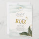 Elegante Greenery Dourado colocou um anel na placa de mesa de jogos de Chá de panela. Esta surpreendente carta de mesa é a maneira perfeita de adicionar um elemento belo e interativo aos seus jogos de chá de panela. Projetado para ajustado perfeito em suportes de placa ou clipe (não incluído), seu design de lado duplo apresenta uma imagem espelhada na parte traseira. Isso garante uma exibição sem falhas de qualquer ângulo, fazer-a de uma peça verdadeiramente completa e elegante. A carta é lindamente personalizada com uma contagem final até o grande dia, em um estilo único no topo. Abaixo, aparece o nome da futura noiva, seguido de "Chá de panela" em tipografia elegante. As palavras "colocar um Anel nele" são colocadas em um roteiro ousado ao lado de uma charmosa ilustração do anel, convidando convidados a participar desse jogo clássico. As regras e direções do jogo também estão incluídas, todas colocadas contra o espantoso design de cor d'água verde e dourado da coleção. Esta carta elegante serve como um belo pedaço de decoração e um guia de jogos divertidos, garantindo que cada detalhe de sua celebração seja sofisticado e sem esforço.