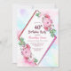 Um convite de festas aniversário de 40 anos de moldura geométrica de diamante floral cor-de-rosa-d-água.