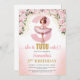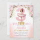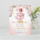 Tutu Ballerina Primeiro convite de aniversário com uma garota bonitinha de aquarela com roupas de tutu combinadas rosas cor-de-rosa claro pastel e confete com brilho dourado. Um vestido de tutu e rosas cor-de-rosa macio e faíscas douradas se juntam para um convite de aniversário clássico que certamente impressionará! Excitada frase "Ela é fofa" em um roteiro elegante. Contacte-me para obter itens correspondentes ou para personalização, Rosas embebidos ©