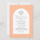 O elegante design de casamento em pêssego apresenta caligrafia moderna e escrita em cinza carvão dispostos em uma bela borda de pêssego arqueada. A borda é acentuada com uma elegante borda branca delicada.
