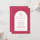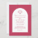 O elegante design de casamento em vermelho magenta apresenta caligrafia moderna e escrita em magenta dispostos em uma bela borda arqueada. A borda é acentuada com uma elegante borda branca delicada.