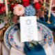 Convites Elegante Crista Floral Azul com Costas Listradas d