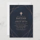 Convites Elegante Cruz Geométrica em Naval e Dourado Rosa p