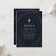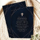 Celebre o batismo do seu bebê com este convite elegante com um fundo azul-marinho elegante e linhas geométricas em rose gold. O design minimalista é realçado por uma cruz sutil, criando um visual sofisticado e moderno. Perfeito para uma cerimônia elegante e memorável, este convite adiciona um toque de elegância e requinte ao seu evento especial. Personalize com os detalhes do seu evento para criar um anúncio único e pessoal.