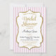 Um elegante chá de panela cor-de-rosa e dourado com falso quadro de destaque de brilho dourado e listras cor-de-rosa e branca com texto dourado e preto. Este convite para chás de panela moderno é uma forma super na moda de convidar convidados para o chá de casamento para a sua celebração formal de noivas.