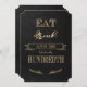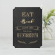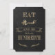 Elegante, Dourada BEBIDA DE COMIDA E seja design de cartão de aniversário da HUNDREDTH. Apresenta tipografia, ornamentos, elegantes e falsa dourada "EAT Beber AND BE HUNDREDTH", num fundo texturizado a preto. Use a ferramenta Personalizar para adicionar suas informações.Para obter mais informações, visite minha coleção de FESTAS DE ANIVERSÁRIO EAT DRINK.