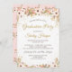Confetti Dourado Floral Elegante Convite à Festa de formatura Rosa