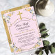 Convites Elegante Dourada Cross PInk Floral 1rua Santa Comu