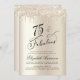 Celebre seus 75 anos de brilho com este elegante convite de aniversário virtual 🎉 reluz dourado 🎂 com "75 & Fabuloso" em um roteiro de na moda contra um fundo de folhas falsas em ouro champanhe, com gotas de brilho dourado. Você pode personalizar com o nome dela e os detalhes da festa online.
