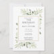Apresentando delicadas folhas de aquarela, este convite de 70 chic pode ser personalizado com suas informações especiais de aniversário, com um fundo de sábio prateado no reverso. Projetado por Thisnotme©