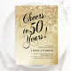 Elegante 50º convite de aniversário. Design elegante em ouro brilhante e preto. Possui fonte e confete de script de tipografia. Perfeito para uma comemoração de um dia de mulher na moda. Personalize com seus próprios detalhes. Envie-me uma mensagem se precisar de idade personalizada. Impressos convites Zazzle ou modelo de impressão digital instantânea para download.