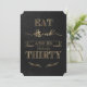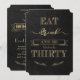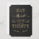 Elegante, Dourada BEBIDA DE COMIDA E seja design de 30 de aniversário. Apresenta tipografia, ornamentos elegantes e falsa dourada "Bebida COMIDA E BE TRINTA", num fundo texturizado a preto. Use a ferramenta Personalizar para adicionar suas informações.Para obter mais informações, visite minha coleção de FESTAS DE ANIVERSÁRIO EAT DRINK.