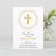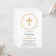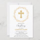 © Socialite Designs & LICENCORS. Belo batizado ou convite batismo com uma cruz de ouro e um quadro floral de ouro. Um convite maravilhoso para convidar a família e os amigos para comparecerem ao evento e se reunirem depois.