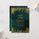 O Elegante Dourado Deixa Velvet Verde Salvar O Convite De Casamento De Data. Este belo convite apresenta uma tipografia de ouro elegante e folhas de ouro num fundo verde de veludo. Você pode personalizá-lo pressionando o botão (Personalizar). Se quiser personalizá-lo mais, vá para a opção (Clique para personalizar mais). Dimensão: 5" x 7" Personalizável: Sim, Crie o seu próprio. —DMG A Perfeição—