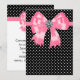 Laço rosa elegante com centro de diamante convite de festa de bolinhas pretas. Este convite de 5x7 rosa e preto de bolinhas chique funciona muito bem para um convite de aniversário de bolinhas pretas, save the date, convite de casamento de bolinhas rosa e preto, convite de chá de bebê de bolinhas pretas, convite de bat mitzvah de bolinhas pretas e qualquer outra ocasião especial. Adicione seus detalhes na frente e no verso adicionando os detalhes do evento, estilo de fonte, tamanho e cor da fonte e texto. Por favor, observe que todos os desenhos de convite que você encontrará no Zazzle são gráficos impressos em papel simples sem joias, laços, relevos, dourados ou peças ou partes adicionais.