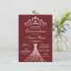 Quinceañera Mis Quince Anos. Diamante brilhante tiara / coroa e vestido / vestido. Vermelho escuro, cor burguenta. Fácil de editar placas de modelo. Perfeito para a festa de aniversário 15.