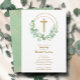 Os convites para batizar elegantes apresentam uma cruz falsa dourada, uma coroa de folhas de eucalipto e seus detalhes em caracteres quicos na frente. Os pontos Dourados de uma aquarela verde são apresentados no verso, perfeito para a primeira comunhão, batismo ou batizante do seu filho. Itens CORRESPONDENTES disponíveis em nossa loja.