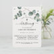 Elegante convite botânico Eucalyptus Christening. Apresenta um arranjo de folhas e folhagem de cor aquosa de eucalipto, que leva ao título em letra chic manuscrita. Há um espaço de modelo atrás para uma mensagem extra para seus convidados e família. Se precisar de ajuda, por favor, avise-me (Maria), clique no botão de contato abaixo ou diretamente em info@the52edit.com.