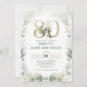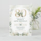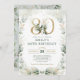 Elegante convite de 80 de aniversário com tema botânico com lindas cores aquáticas verdes e douradas