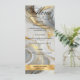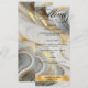 Um cardápio de casamento formal e elegante com um com ouro falso, cinza e design branco marmoreado.