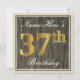 Este simples e bolsa mensageifesta de aniversario elegante de convite apresenta uma mensagem personalizada como "37.º Aniversário do Nome-Aqui" (com o "37.º" a ter uma aparência falsa/imitação de cor dourada) dentro de uma área quadrada de aparência rústica/imitação de madeira com um contorno simples de fronteira. O nome está em um texto elegante, de cor branca, semelhante a script, e pode ser personalizado. A parte traseira apresenta detalhes personalizados do convite. Um convite de aniversário como este poderia talvez ser usado ao convidar pessoas para uma festa de aniversário que está sendo realizada para alguém que está comemorando seus trinta e sete anos. [~Z0000231]