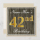 Este design de convite simples e bolsa mensageifesta de aniversario elegante apresenta uma mensagem personalizada como "Name-Here's 42nd Birthday" (com o "42º" a ter um visual falsa/imitado de cor dourada) dentro de uma área quadrada de aparência rústica de madeira/imitação com um contorno de fronteira simples. O nome está em um texto elegante, de cor branca, parecido com script, e pode ser personalizado. A parte traseira apresenta detalhes personalizados do convite. Um convite de aniversário como este poderia talvez ser usado ao convidar pessoas para uma festa de aniversário em prisão preventiva para alguém que comemora seu quarenta e segundo aniversário. [~Z0000231]
